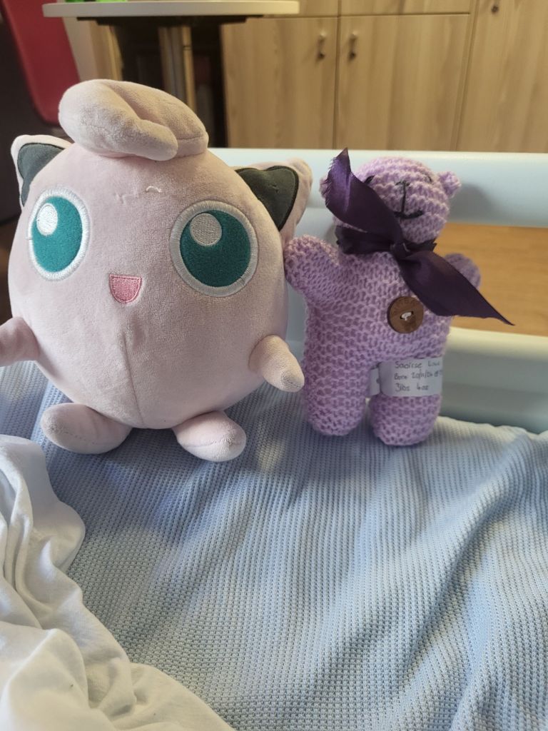 I’m not even going to pretend that I remember everything that was in the memory box we were given but I can say that it was all handmade, thoughtful and a means to create a memory with our baby that won’t be able to make her own. There were two purple bears in our box. We took one for Saoirse and one for Wee Daftie so that they would be able to share one tangible thing. Saoirse’s bear stayed with her and Wee Daftie called hers Penelope.
