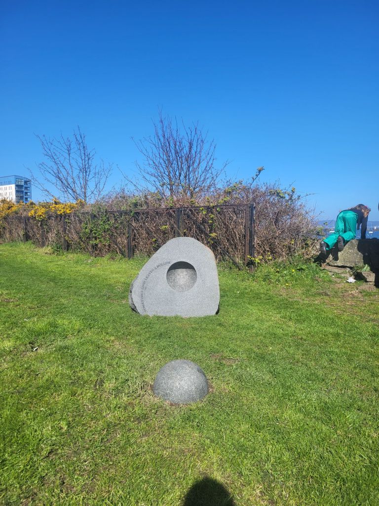 We walked along the Granton Breakwater, starting at Corinthians Quay, stopping at Wardie Bay and then headed up onto the Edinburgh cycle path network again. Along the grassy banks, there are stones that have been carved with words and symbols. It’s a memorial of sorts to Covid times. We stopped and read each one as we remembered how we walked up and down this very road 5 years ago when we were only allowed out once a day for exercise. It’s crazy when you think about it. I know it was important and we did our very best…but it also seems like some kind of odd dream sequence where nothing made sense.