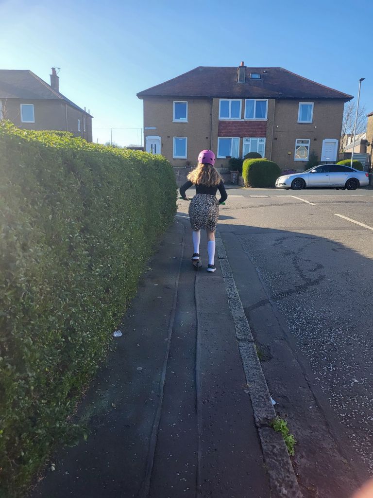 Wee Daftie’s school isn’t in our catchment school so we generally get a bus. We have walked and we have scooted before but we don’t generally. It’s not very far, Google maps will tell you 28 minutes by foot so it’s actually a nice distance to cover.