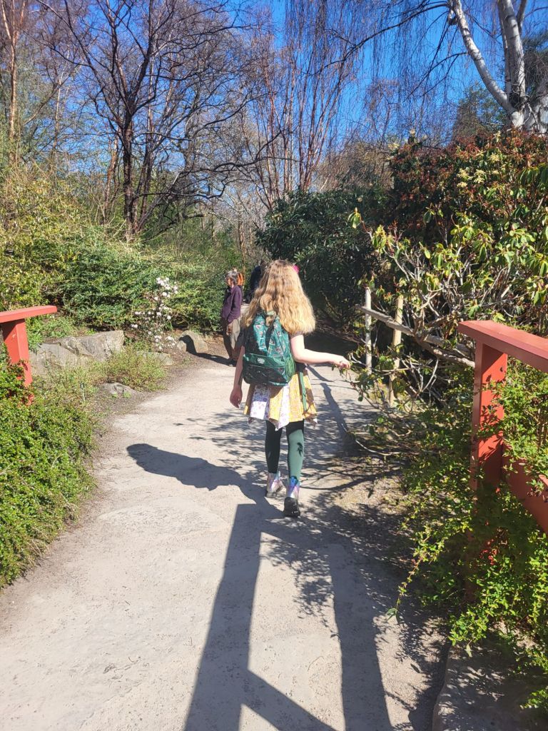She twirled, she danced, she giggled, and she tried to catch falling petals in her hat. She named all the ducks we saw.