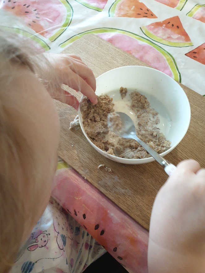 Using the world’s smallest spoon to eat brekkie, as you do.
