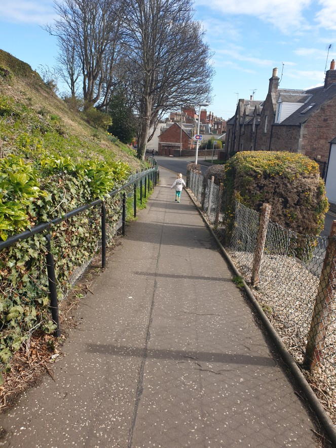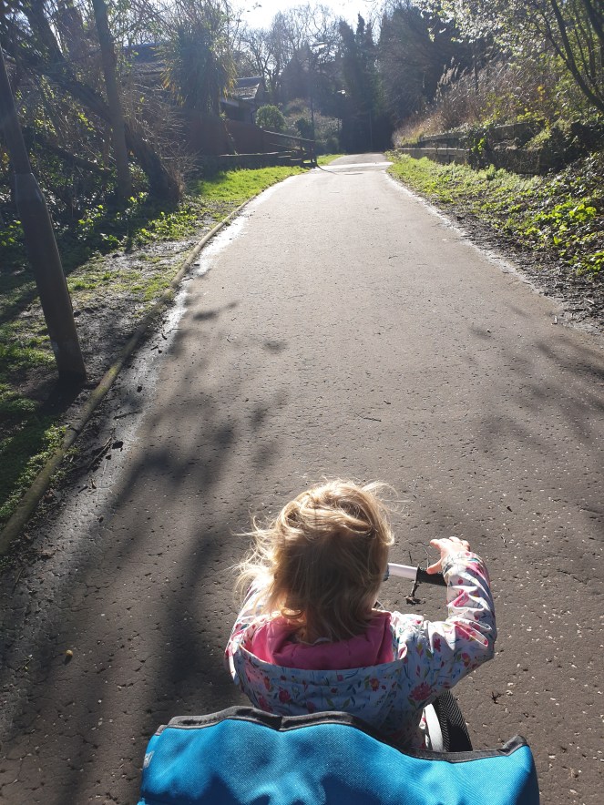 This was the walk from my friend’s house to the bus stop home. Not bad, eh? Wee Daftie genuinely walked about half of this all by herself. Wee champ.