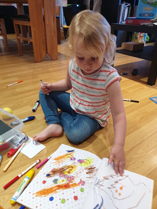 The rest of the afternoon was just reading, drawing and a nap. My girl is fast dropping her nap so she’s currently only having about two naps a week. Today was a nap day and it was well earned. It is obviously exhausting looking after a small whirling dervish 24/7 but it feels super intensified on her no nap days. Which is 5 days out of 7.