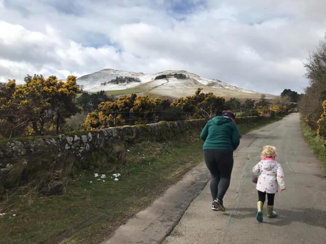 We then headed along the road for a walk along the Pentlands. We obviously didn’t go up the hills because, y’know, she’s only small but the big path around was super. She did brilliantly and walked for ages by herself. My favourite part was when she started pretending to be a “little monster” and chased after her auntie growling.