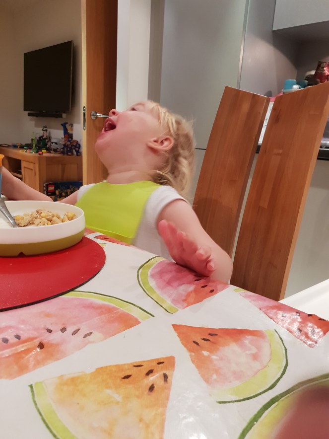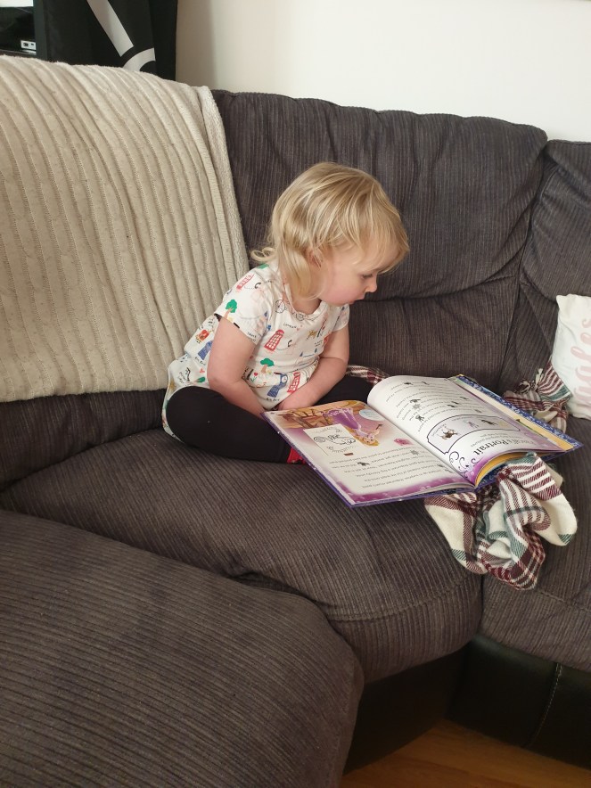 I think what made today so brilliantly draining was just the sheer volume of questions she kept asking while reading books. On a normal day, we can get through a large number of books but lately, thanks to a Thomas the Tank Engine box set, we have been reading a ridiculous amount. I am not complaining. I love books. I think it is invaluable to read with kids and she genuinely enjoys being read to or by “herself “. However, when she is asking, “Whass sazz?!” on every page, on every picture, on every book, it can get a little tiresome. Part of me gets bored of answering the same questions, part of me doesn’t appreciate my reading rhythm being thrown off.