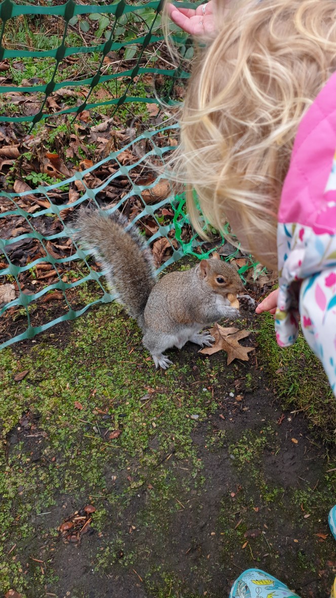 And we were not disappointed. We reckon that we saw six and chatted properly to three. Wee Daftie was such a superstar. From being brave and patient while holding out the nuts for them to shouting, “Squirrel! Where are you?!” I was super proud.