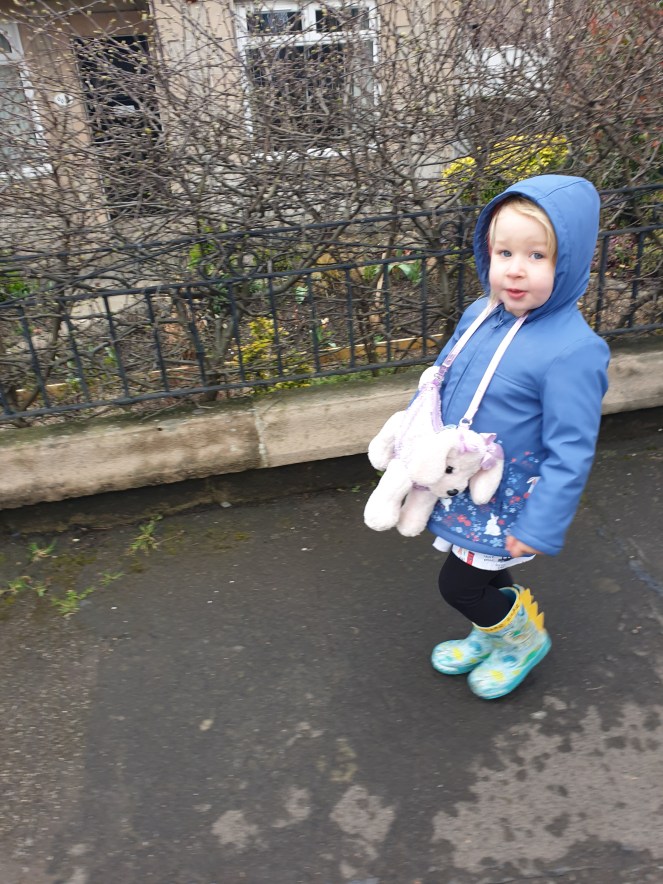 Despite all the fun and puddle jumping, we did fall out a little bit today. In general, she isn’t the worst. She knows, as much as she at two and half, what we think is okay and what we don’t. Equally, she is also a toddler who has emotions that can be incredibly intense and irrational. We work really hard as a family, all three of us in the Daft Family Household, to work out the best path for us all. Of course we don’t always get it right but we’re also always going to try again.