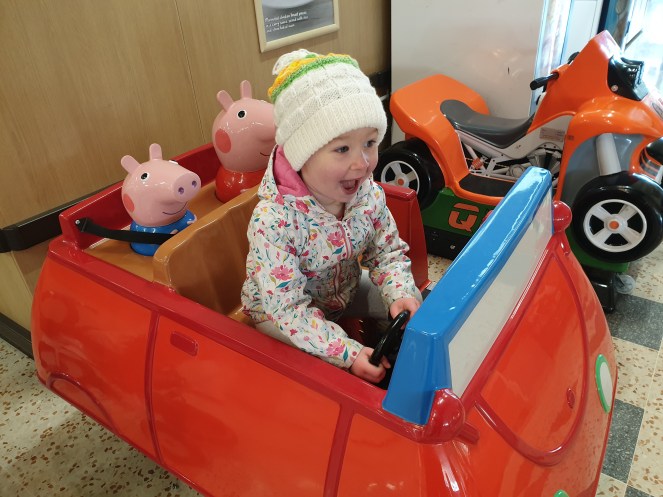 We headed off for soft play this morning and, like the other day, headed for a bus stop further away than normal. This did a few things for us. One, more steps which is part of the challenge and more steps means more donations, which means more money for a good cause, right? Two, lots of fun to be had running and jumping through puddles. And three, in all honesty, I like to know how far she can and will walk. I am are she walks more than another tiny person her age might but she still always surprises me with her stamina and determination.