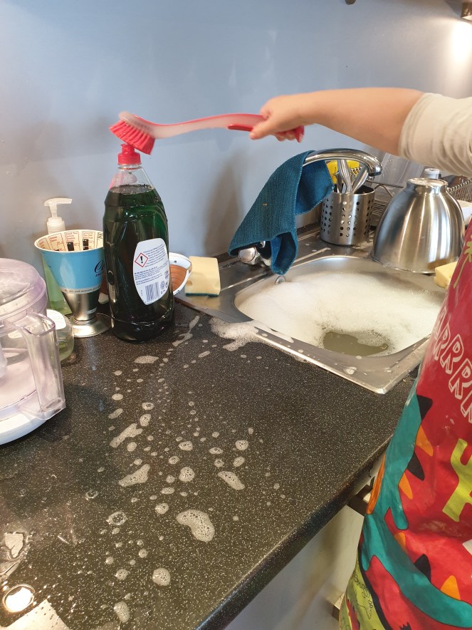 This is how you do the washing up, by the way. We have all been doing it wrong.