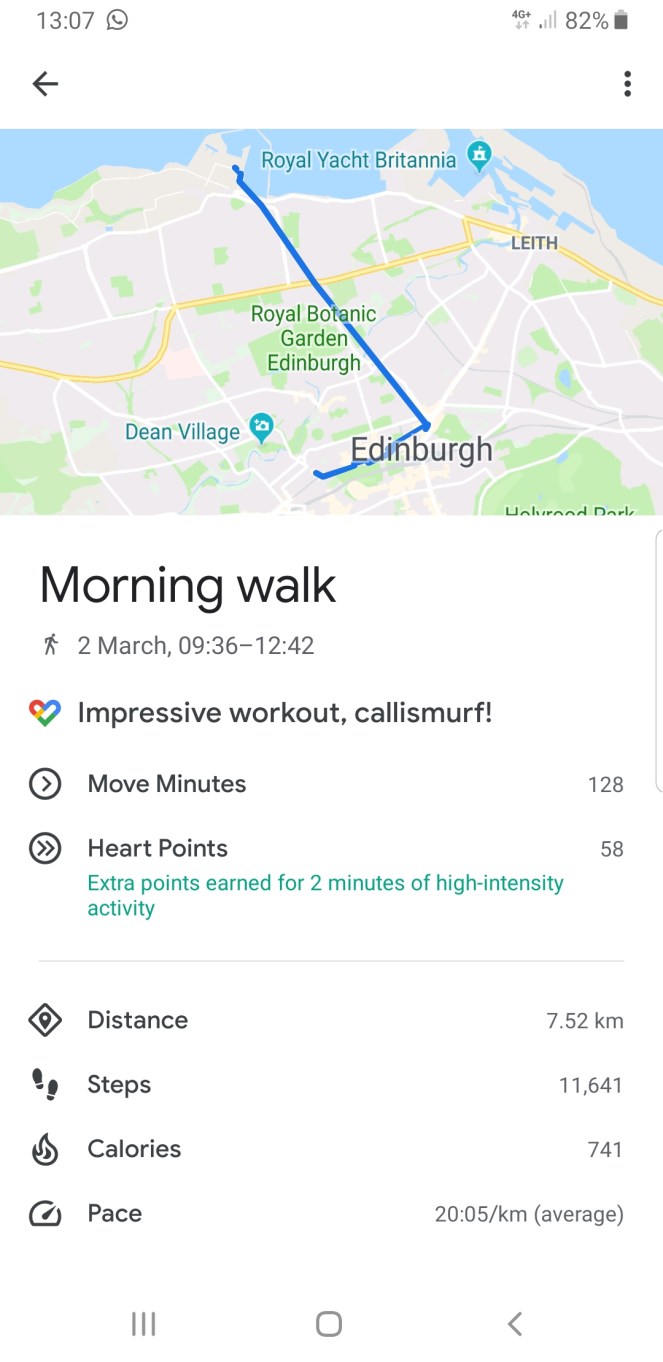 So after lunch, off we went for a walk, a bus, a walk, a couple of coffees, a shop, a bigger walk (where we “entertained” other pedestrians) and finally a bus home. Steps hit before we reached the front door, which was fabulous.